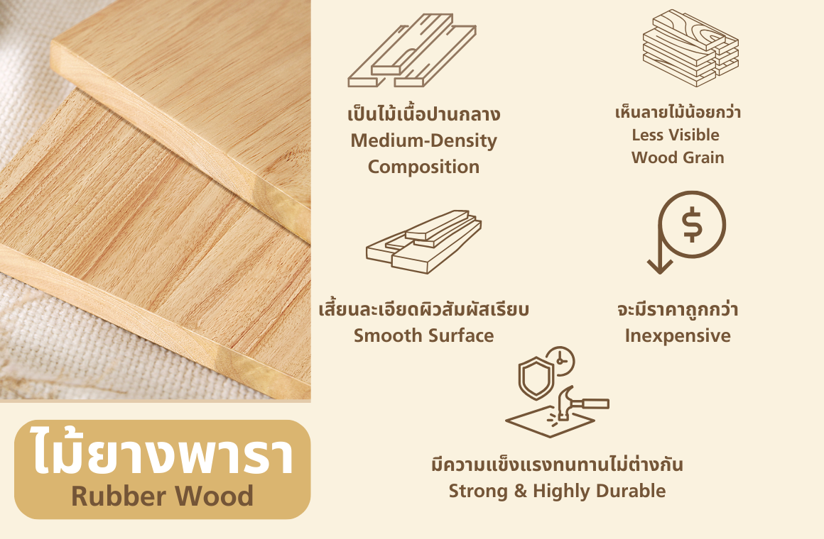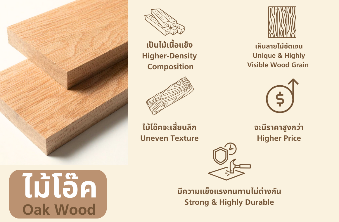 ไม้โอ๊ค และ ไม้ยางพารา ต่างกันยังไง