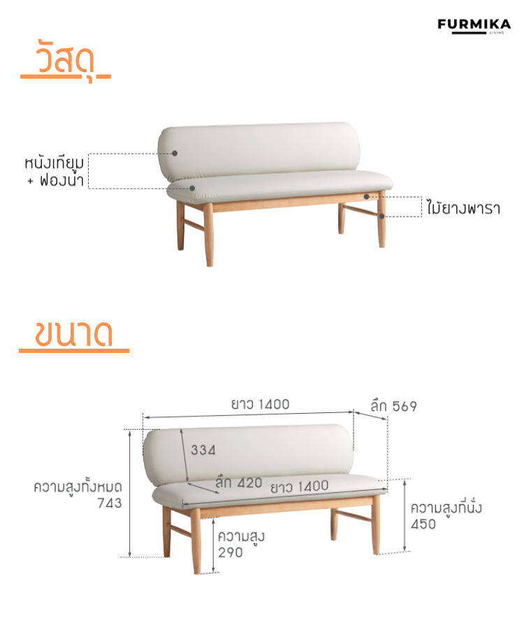 Size ขนาดสินค้า: W120cm x D57cm x H74cm / W140cm x D57cm x H74cm (Seat Height 45cm)